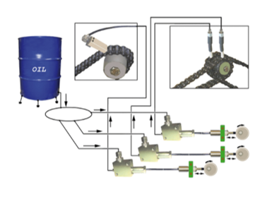 Progressive system for grease or oil – for slow moving, small chains